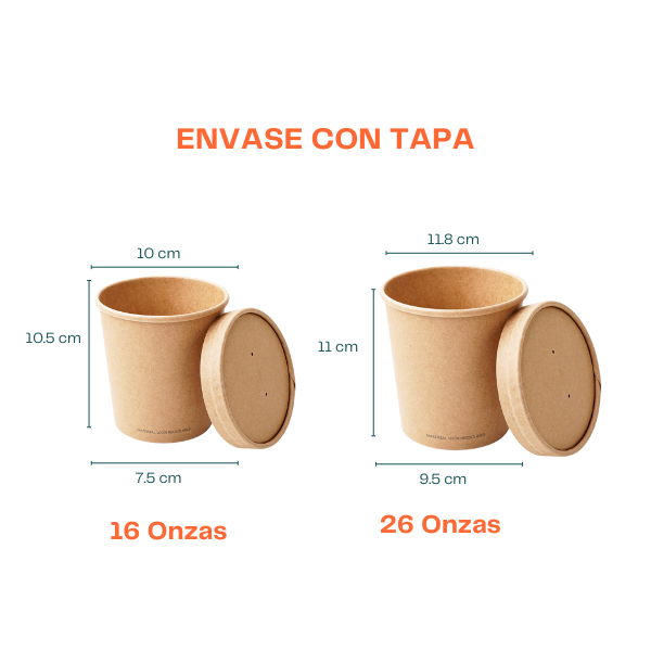 | Recipiente 26oz | Kraft 337g + Tapa Kraft (Interior Encerado) | 118*96*108 | 500 |