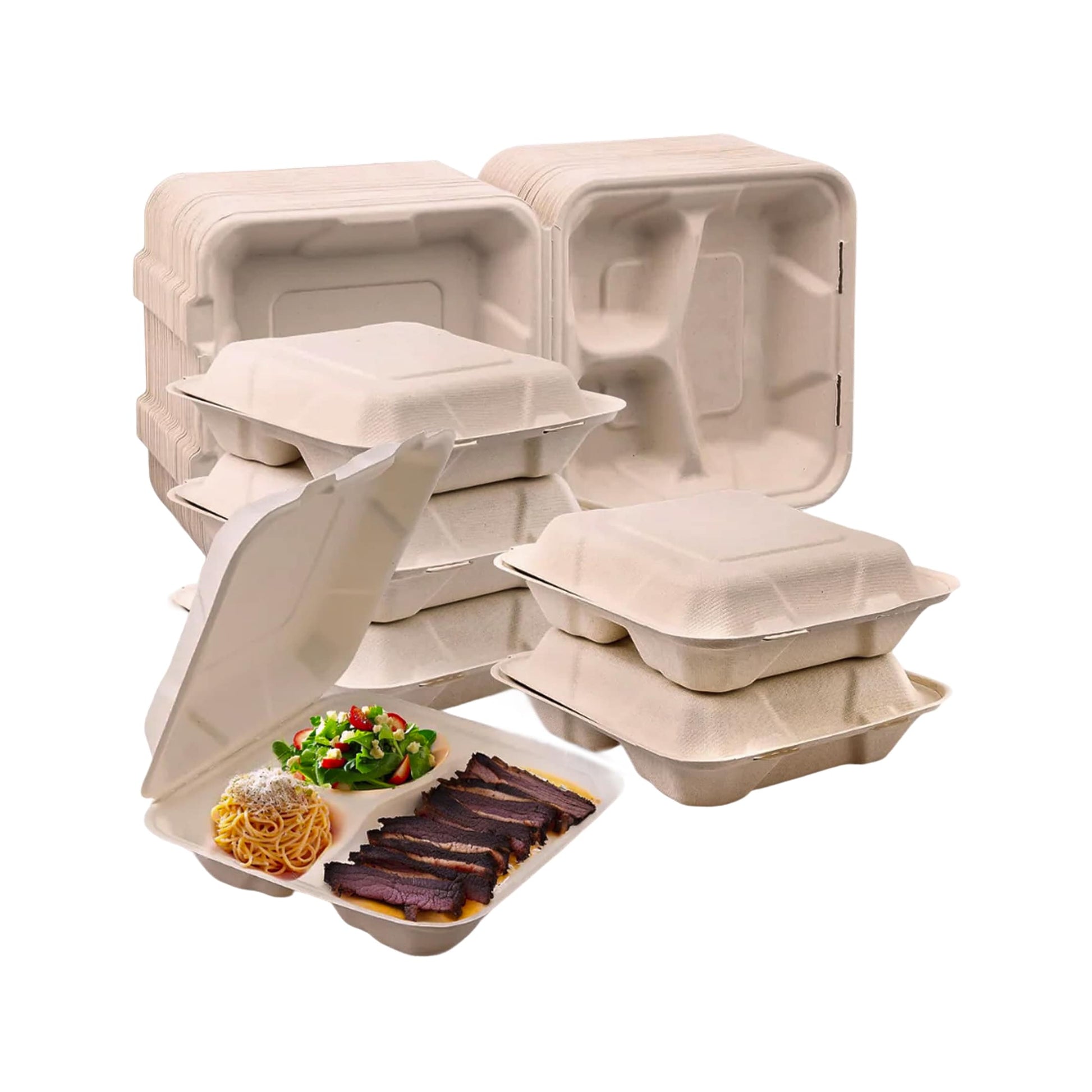 - Contenedor hecho a base de bagazo de trigo.